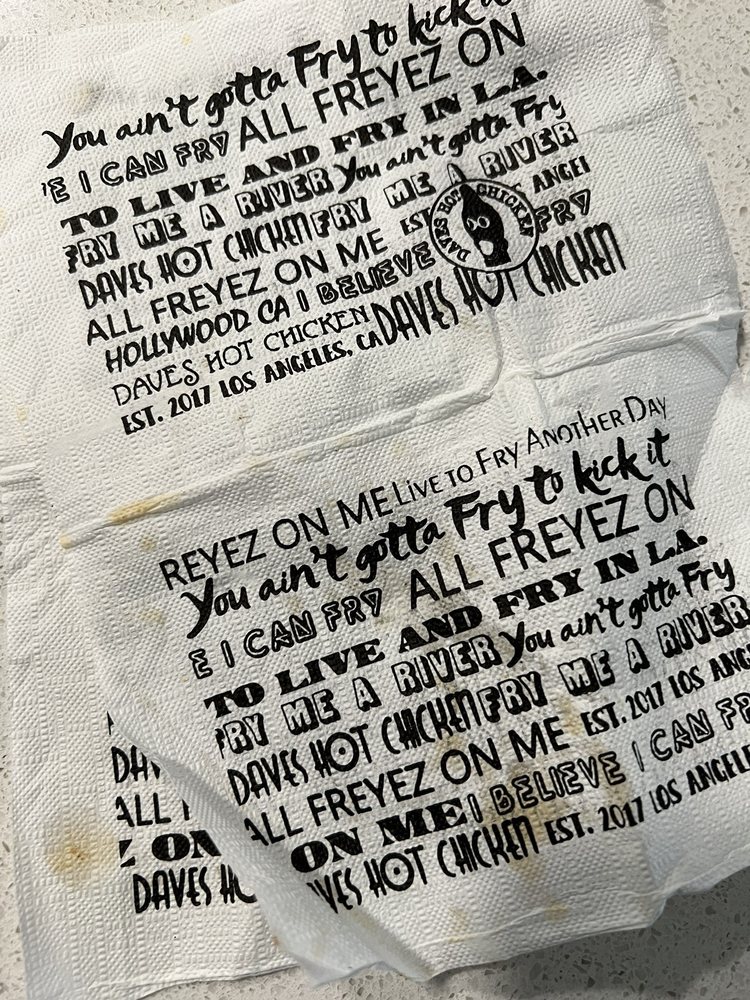10 sliders (4 mild, 5 medium, 1 Reaper...are you ready?) **DAVE'S HOT CHICKEN REAPER WAIVERBy ordering and eating the REAPER, you acknowledge its extreme heat and potential risks, including injury, property damage, distress, or death.You release and hold Dave's Hot Chicken, its affiliates, and employees harmless from any claims related to consuming the REAPER, including REAPER ROULETTE.By ordering, you confirm you are 18+ and legally capable of accepting this waiver. Eat at your own risk!